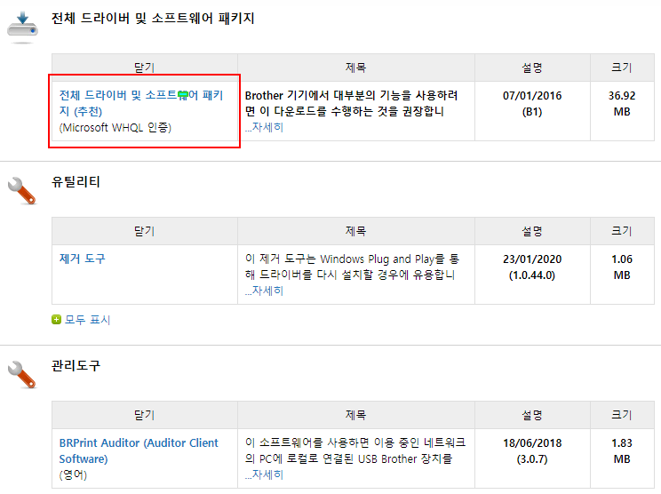 전체 드라이버 및 소프트웨어 패키지를 클릭합니다.