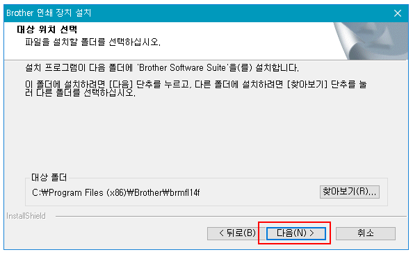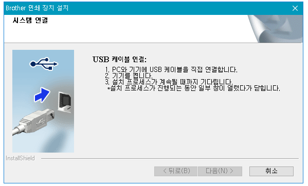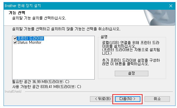 설치 완료후 프린터를 연결합니다. 프린터가 연결되어 있는 경우 다음을 클릭합니다.