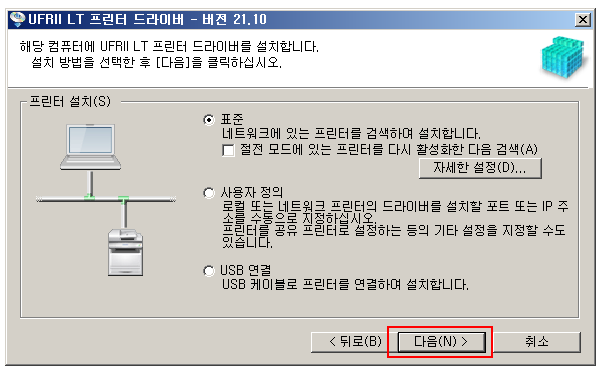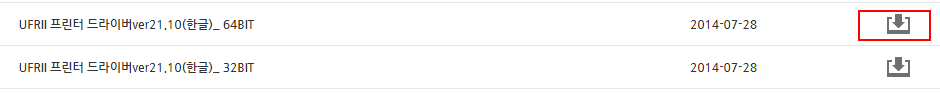 위 링크에서 UFRII 프린터 드라이버ver21.10(한글)_ 64BIT 파일을 다운로드 받으세요.