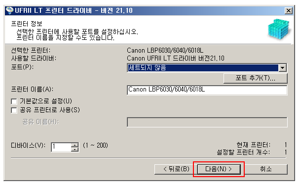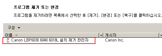 표시이름 : Canon LBP6030 6040 6018L 설치 제거 관리자
