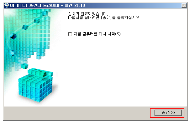 설치가 완료되었습니다. 재시작 메세지가 나오는데 굳이 재시작은 할 필요가 없습니다.