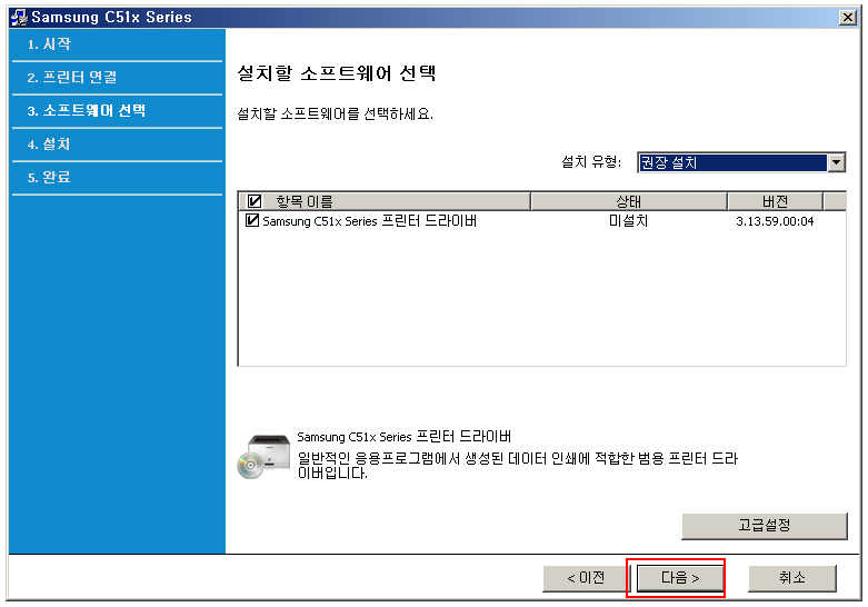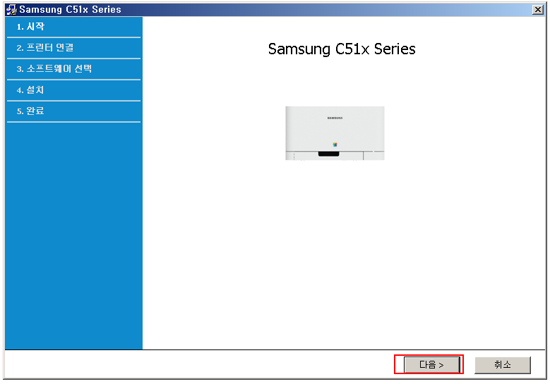 프린터 설치 마법사가 실행됩니다. 다음 클릭.
