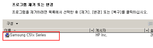 프로그램의 삭제는 Samsung C51x Series 를 더블클릭해서 삭제하면 됩니다.