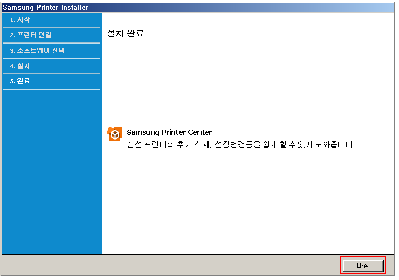 프로그램 설치가 완료되었습니다. 마침을 클릭합니다.