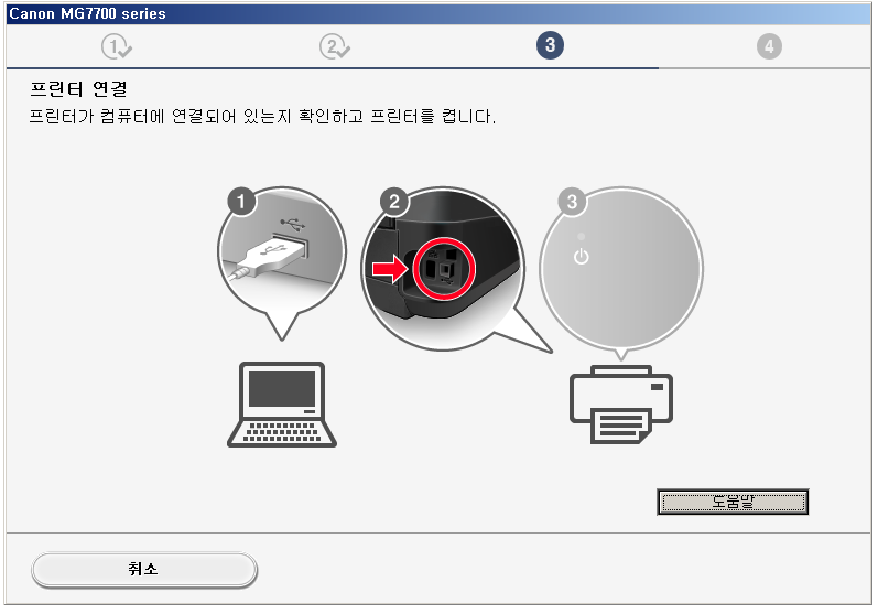 USB 방식으로 진행을 하고 프린터의 전원을 켜고, 케이블을 연결하면 프린터가 자동으로 인식합니다.