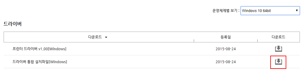 드라이버 통합 설치파일(Windows)로 되어있는 파일을 다운로드 받으세요.