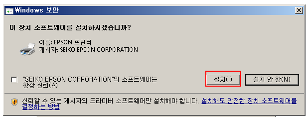 드라이버 설치 보안 메세지가 뜨는데 설치를 클릭합니다.