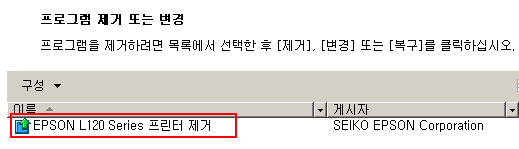 [EPSON L120 Series 프린터 제거]를 더블클릭해서 삭제하세요.