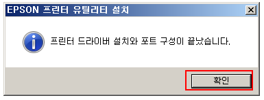 프린터 드라이버 설치와 포트 구성이 끝났습니다. 확인을 클릭합니다.
