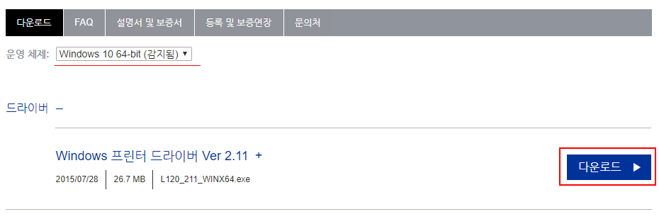 위 링크로 이동하여 드라이버 옆의 다운로드 버튼을 클릭하세요.