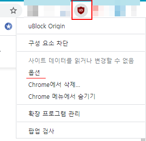 확장프로그램이 설치되면 UO 라는 빨간 아이콘이 생기는데 마우스 우클릭해서 옵션을 클릭하세요.