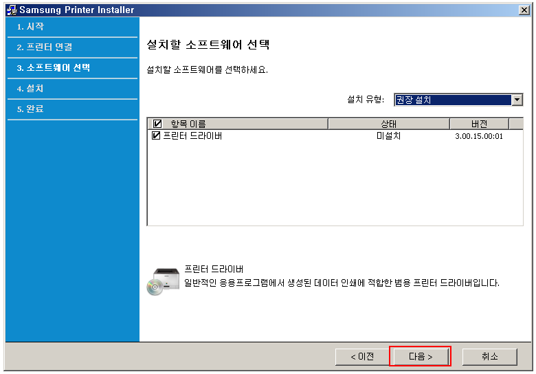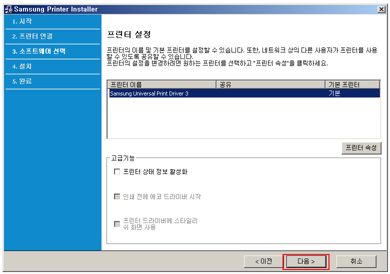 프린터 설정도 기본값으로 둡니다.