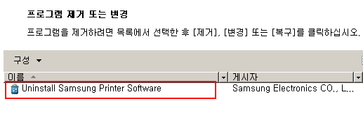 [Uninstall Samsung Printer Software]를 더블클릭해서 삭제하세요.
