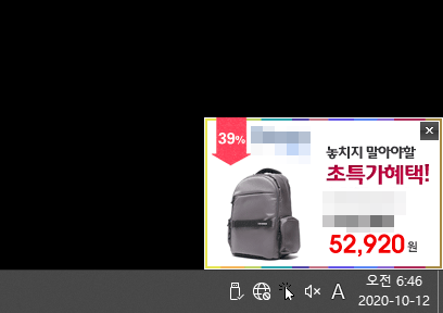 컴퓨터를 쓰다보면 작업표시줄 오른쪽 하단에 가끔가다 뜨는 광고가 있지요.