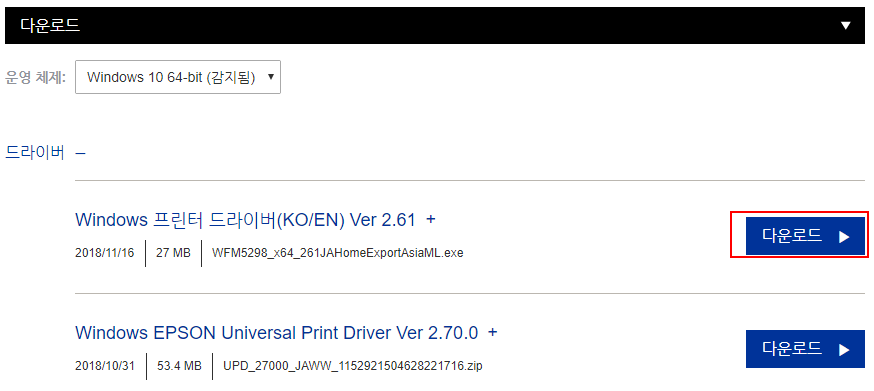 엡손 공식 홈페이지 다운로드 링크입니다.