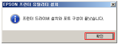 드라이버 설치가 완료되었습니다. 확인을 클릭합니다.