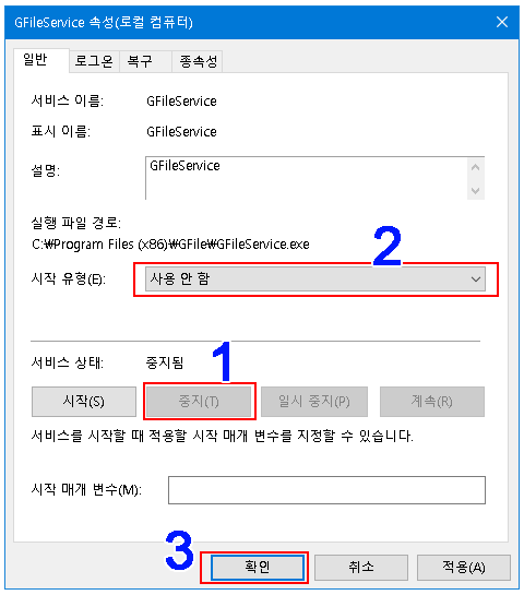 GFileLocal 은 작업관리자 시작프로그램 탭에서 사용안함으로 설정하면 됩니다.