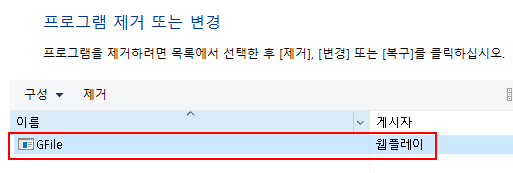 설치한 프로그램의 삭제는 제어판 - 프로그램 추가/제거에서 GFile을 더블클릭해서 삭제하면 됩니다.