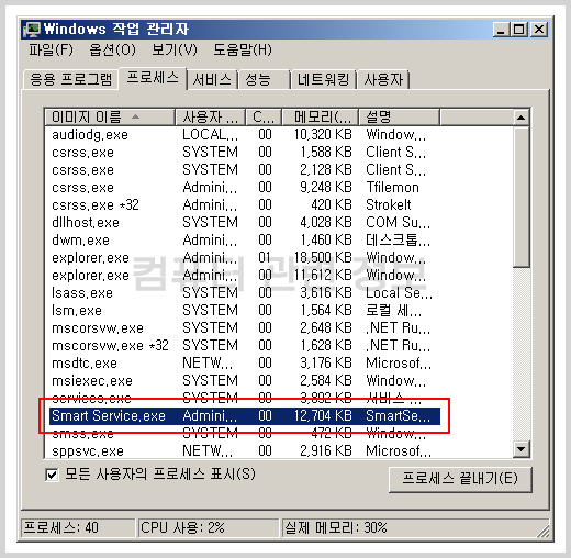 경우에 따라서 SmartService.exe 프로세스가 실행될 수도 있습니다.