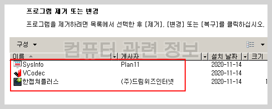 프로그램을 설치한 이후의 프로그램 추가/제거 목록입니다. 두개의 프로그램이 더 설치되어 있는 것을 확인할 수 있습니다.