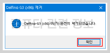 제거가 완료되었습니다. 확인을 클릭합니다.
