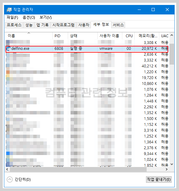 delfino.exe 프로세스 실행화면입니다.