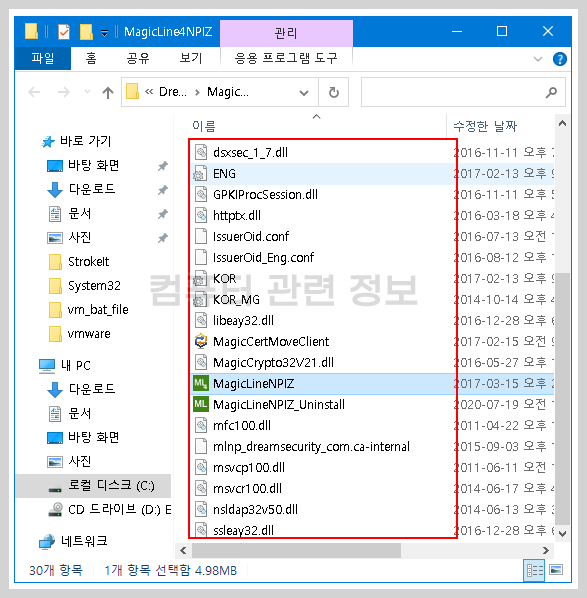 파일 전체경로 : C:\Program Files (x86)\DreamSecurity\MagicLine4NPIZ\MagicLineNPIZ.exe