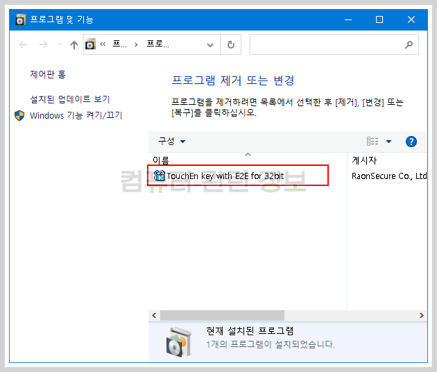프로그램의 이름만으로는 어떠한 프로그램인지, 어디에서 설치가 된 프로그램인지 확인이 어려운 TouchEn key with E2E for 32bit 프로그램에 대해서 자세히 알아보고자 합니다.