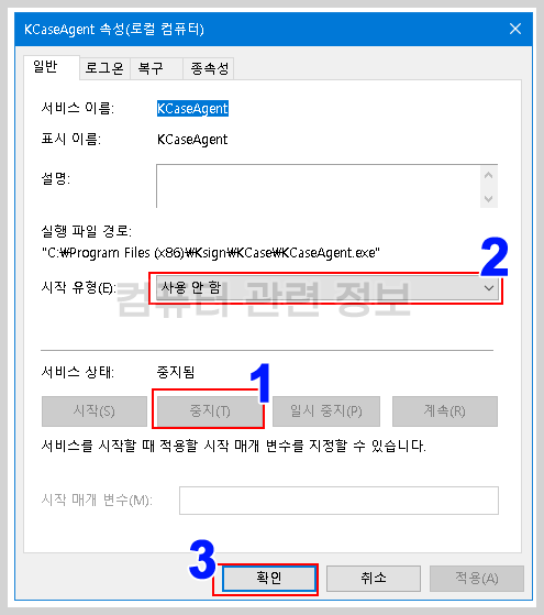 2. 시작 유형을 사용안함으로 변경