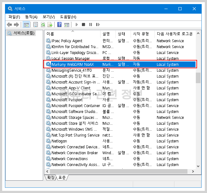 여기에서 Markany WebDRM NoAX 를 찾아서 더블클릭합니다.