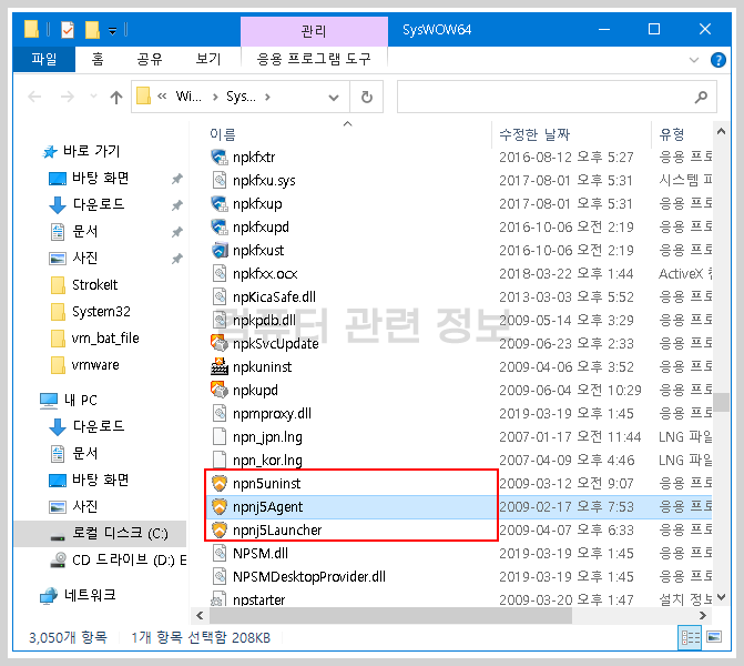 nProtect Netizen 관련 파일입니다. 일반적인 프로그램과는 달리 SysWow64 폴더에 설치가 됩니다.