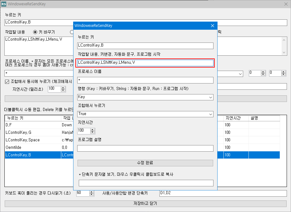 윈도우에서 사용되는 단축키를 원하는 단축키로 변경하는 자작 프로그램입니다.