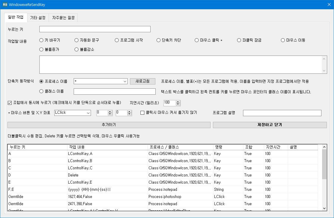 단일키 변경 및 다중키 사용, 특정 프로그램 내에서 단축키 차단도 가능합니다.