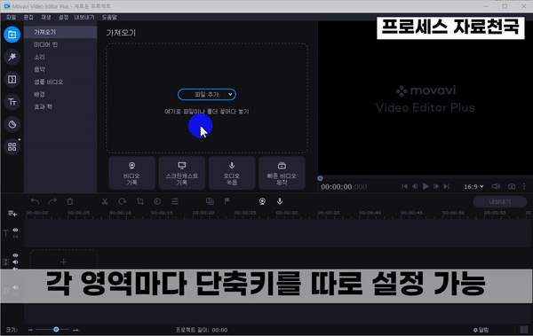 위에 보이는 동영상 편집기 하단 레이어 영역에서 단축키를 등록한 상태의 스크린샷입니다.