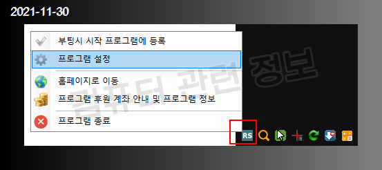 작업표시줄 오른쪽 시스템 트레이에 RS 아이콘이 생기는데 마우스 우클릭해서 프로그램 설정을 누르세요.