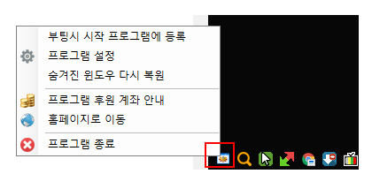 시스템 트레이에 아이콘이 생기는데요. 프로그램 설정을 누르세요.