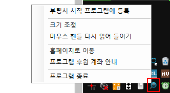 마우스 제스쳐 프로그램이나 기타 다른 마우스 헬퍼 프로그램간의 충돌로 인해 동작하지 않는 경우가 있는데 그럴때는 시스템 트레이 아이콘에서 우클릭 후 마우스 핸들 다시 읽어 들이기를 클릭하세요.