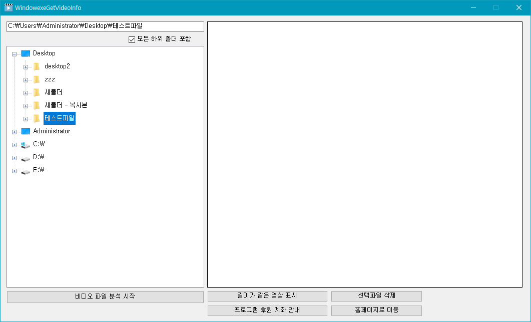 프로그램을 실행하면 아래와 같은 화면이 나오는데 원하는 폴더를 선택하고 비디오 파일 분석 시작을 클릭하세요.