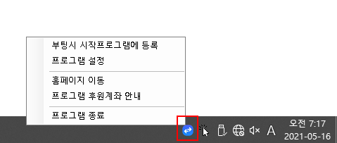 프로그램 동작을 잠시 멈추려면 시스템 트레이 아이콘을 좌클릭하세요. 다시 클릭하면 활성화됩니다.