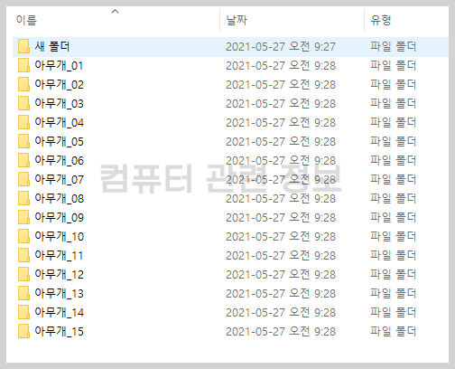 아무개_숫자 폴더가 만들어지고 각 폴더에 파일이 각각 들어간 스크린샷입니다.