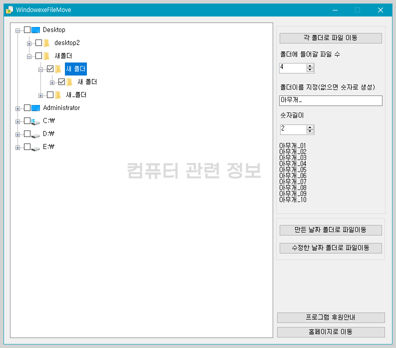 선택한 폴더에 있는 모든 파일을 검색해서 일정한 파일 갯수로 나눠서 폴더를 만들고 각 폴더로 이동하는 자작 프로그램입니다.