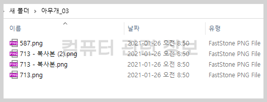 작업하려고하는 탐색기의 파일 스크린샷입니다. 새 폴더 아래에도 여러개의 파일이 있습니다.