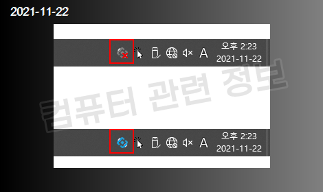 작업표시줄 오른쪽 시스템 트레이에 아이콘이 생깁니다.