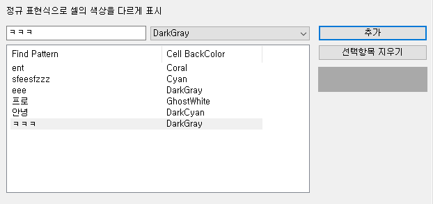 표시이름에 단어가 포함되어 있거나 정규표현식으로 색상을 지정할 수 있습니다.