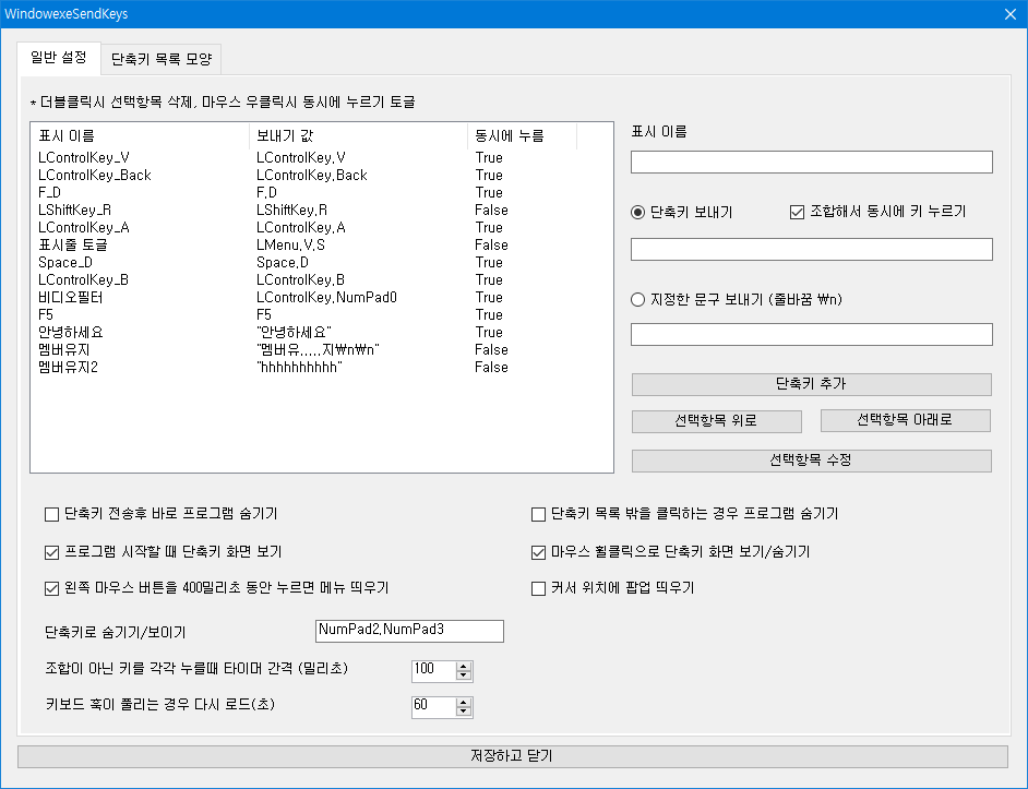 마우스 클릭으로 키보드의 단축키를 누르거나 지정한 자동화 문구를 전송하는 자작 프로그램입니다.