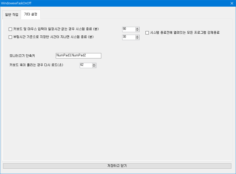 저장하고 닫기를 누르세요. 1초마다 타이머가 돌면서 지정한 시간이 되면 작업이 시작됩니다.