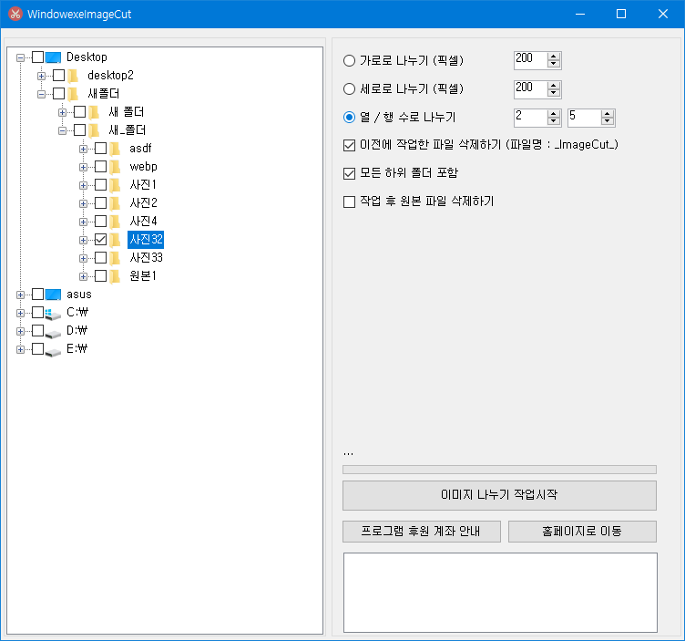 사용자가 지정한 폴더의 모든 이미지 파일을 일정크기로 나누는 자작 프로그램입니다.