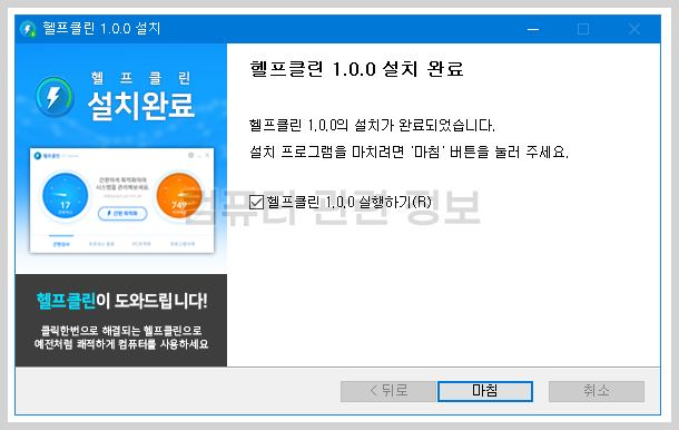 프로그램 설치가 완료되었습니다. 마침을 클릭하면 프로그램이 실행됩니다.