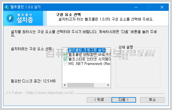 구성요소를 체크합니다. 기본값으로 두고 다음을 클릭하세요.