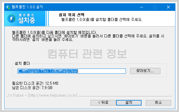 설치폴더도 기본값으로 둡니다. 설치를 클릭하세요.
